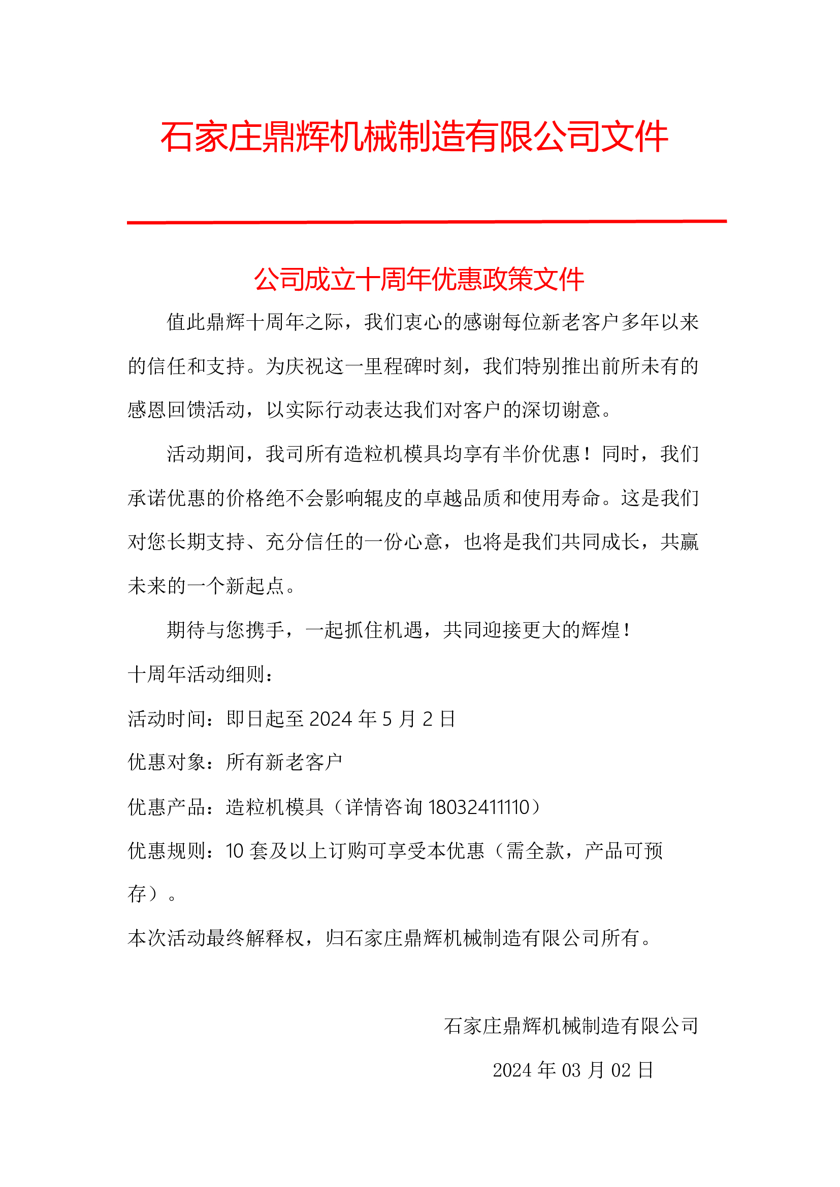 本次活動(dòng)最終解釋權(quán),歸石家莊鼎輝機(jī)械制造有限公司所有。
